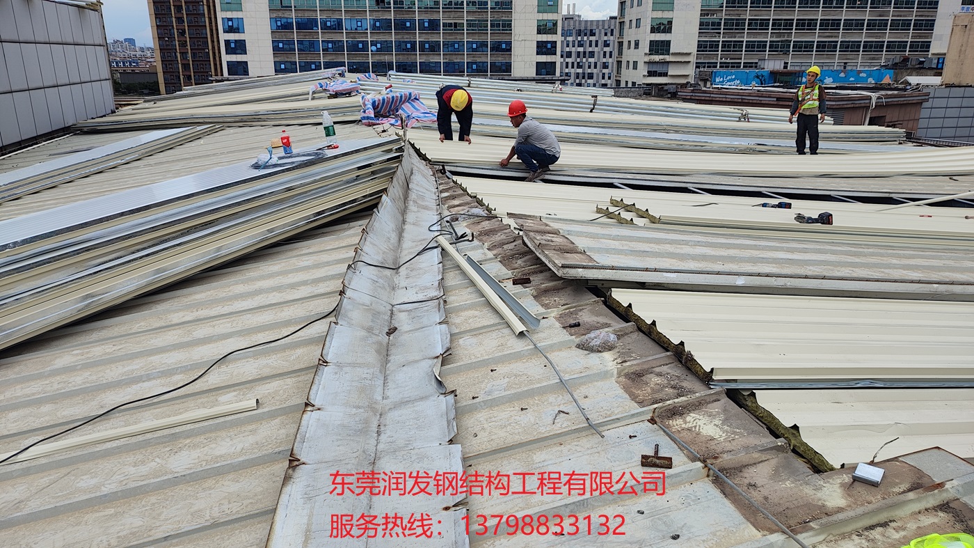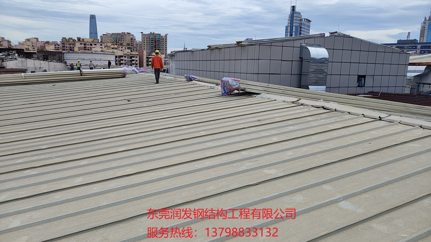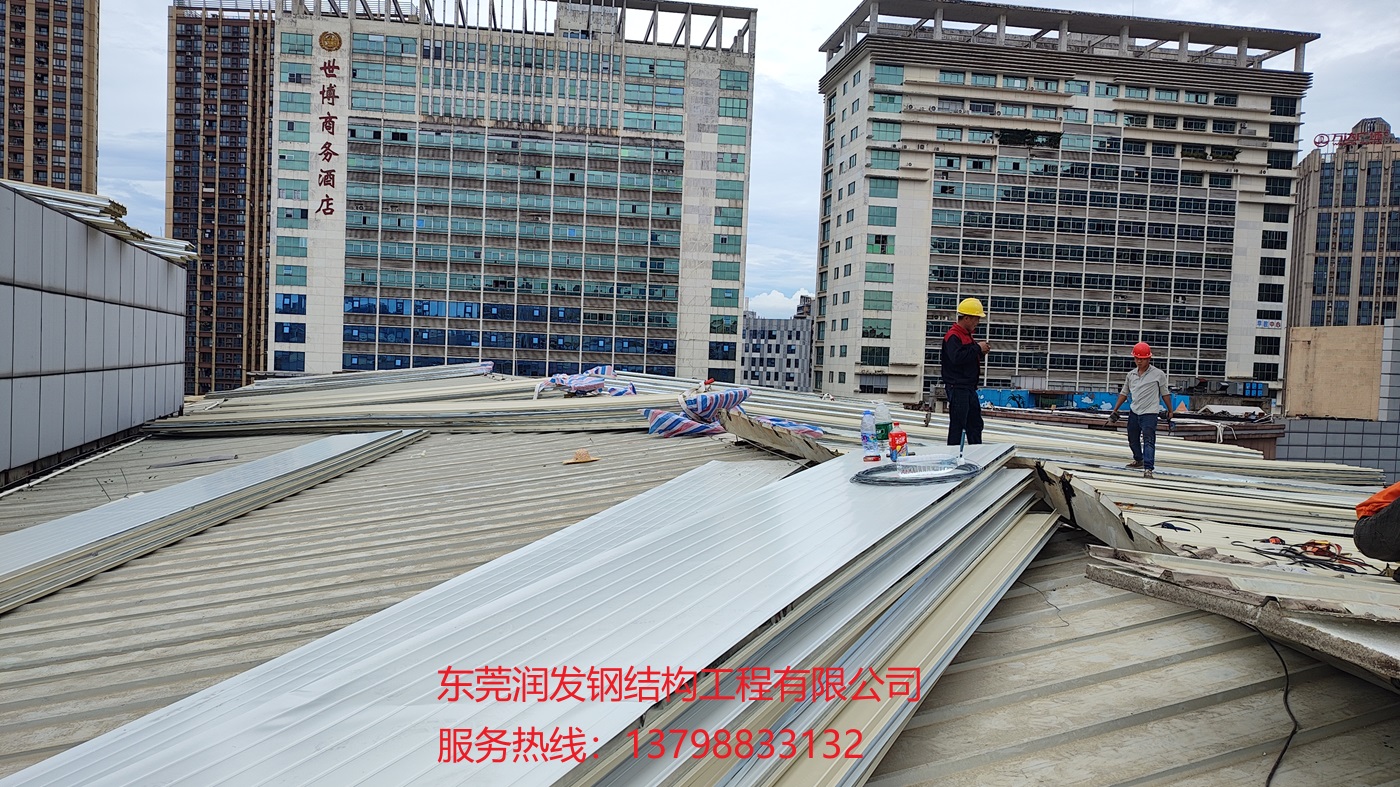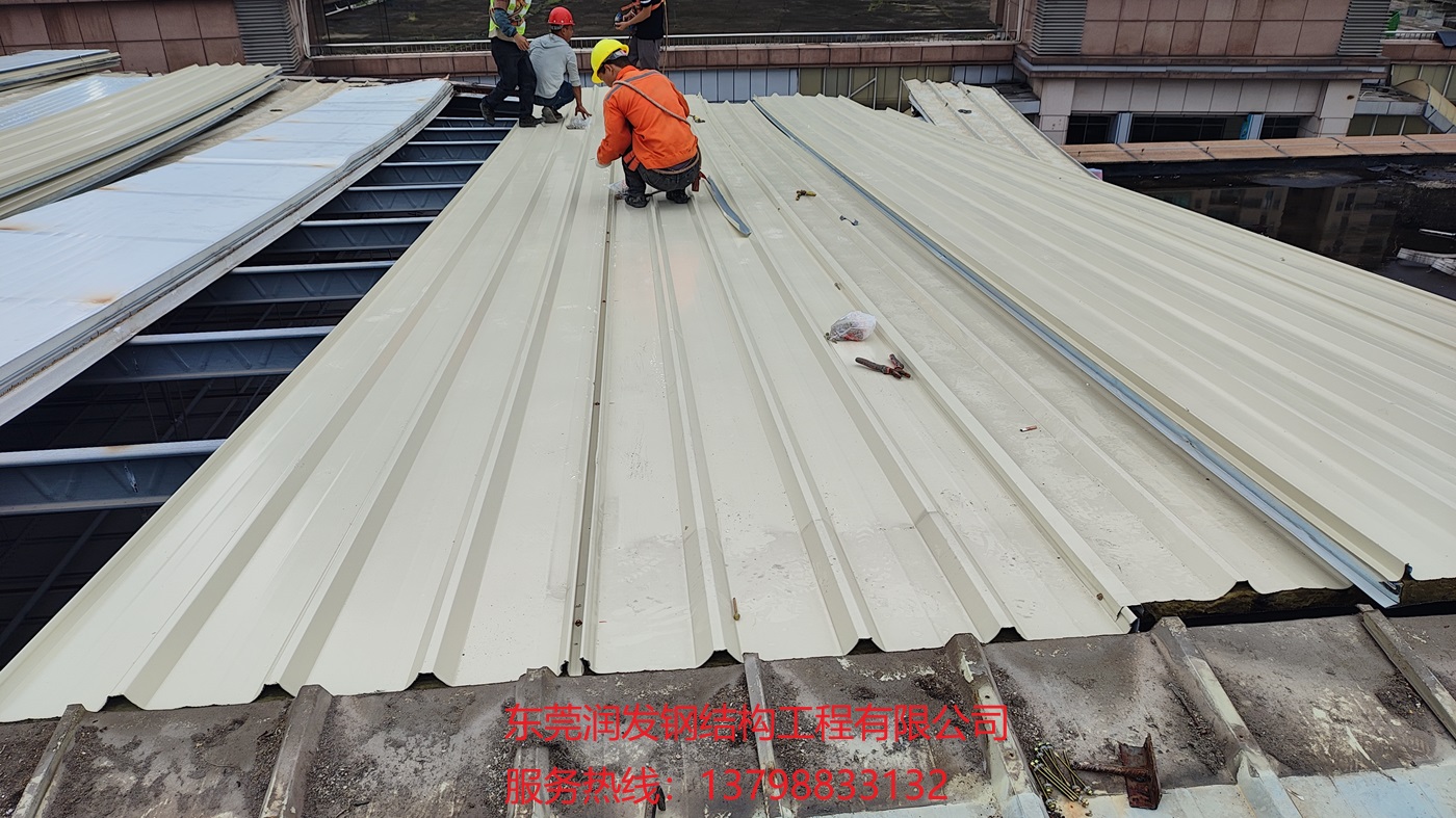 本工程為東莞潤(rùn)發(fā)鋼結(jié)構(gòu)公司承接的,在東莞市東城區(qū)世博廣場(chǎng)物業(yè)管理有限公司電影院屋面原有泡沫隔熱夾芯瓦更換成950型巖棉夾芯瓦項(xiàng)目,巖棉具有隔熱隔音性能佳、A級(jí)防火等優(yōu)點(diǎn),服務(wù)熱線:13798833132